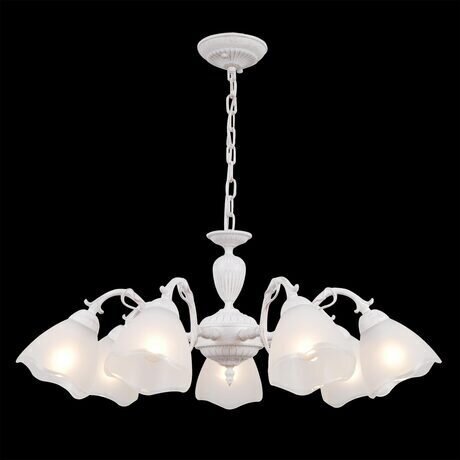 Люстра Citilux Латур CL413270 в классическом стиле. Корпус светильника металлический, с литыми рожками, цвет белый с золотистой патиной. Плафоны стеклянные, полуматовые, с прозрачным волнистым краем. Светильник поставляется в виде комплекта для самостоятельной сборки, с подробной инструкцией. Из данного набора, можно собрать подвесную люстру с плафонами, направленными вверх, дающую мягкий отраженный свет или более яркий вариант с плафонами вниз. Высоту модели можно изменить при установке, уменьшив длину подвесной цепи. Если в помещении низкие потолки, изделие можно собрать вообще без цепи, как потолочную люстру. Более того, на стадии сборки, вы можете подключить светильник для работы, как с одноклавишным, так и с двухклавишным выключателем. В модели используются 7 ламп с цоколем Е27 и максимальной мощностью для ламп накаливания 75Вт. Светодиодные лампы можно использовать более яркие. Тип крепления к потолку – планка.Citilux CL413 LATUR: Вдохновение в каждом луче.
