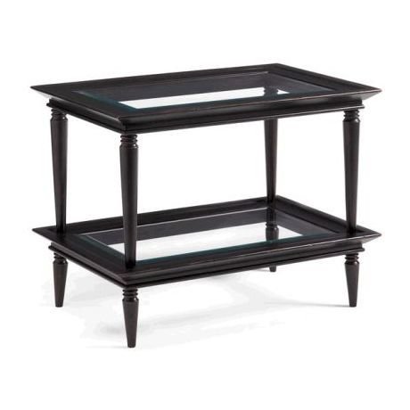 Столик AnnieОписание из карточки:Столик приставной прямоугольной формы со стеклянной столешницей и стеклянной нижней полкой в отделке Black Rub.