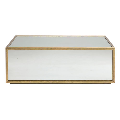Деревянная основа стола выполнена в ярко-золотой отделке и декорирована зеркалами со всех сторон.