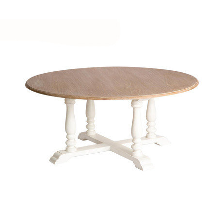 Круглый журнальный стол из массива красного дерева несравненно красив. Это благодаря мягкому контрасту между натуральным деревом, из которого выполнена столешница, и покрытием изогнутых, изящных ножек белого цвета с эффектом потертости. За таким столом будет приятно собраться всей семьей или в кругу любимых друзей.