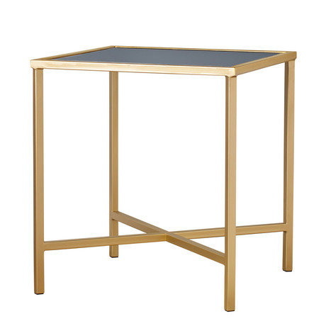 Стильный столик на высоких ножках из металлического каркаса золотого цвета со стеклянной столешницей черного цвета. Элегантный стол, за которым приятно выпить чашечку кофе или чая.